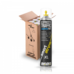 - Approximately 450 m to 600 m of linear marking per box of 6 aerosols, depending on the linewidth and the conditions of the floor.